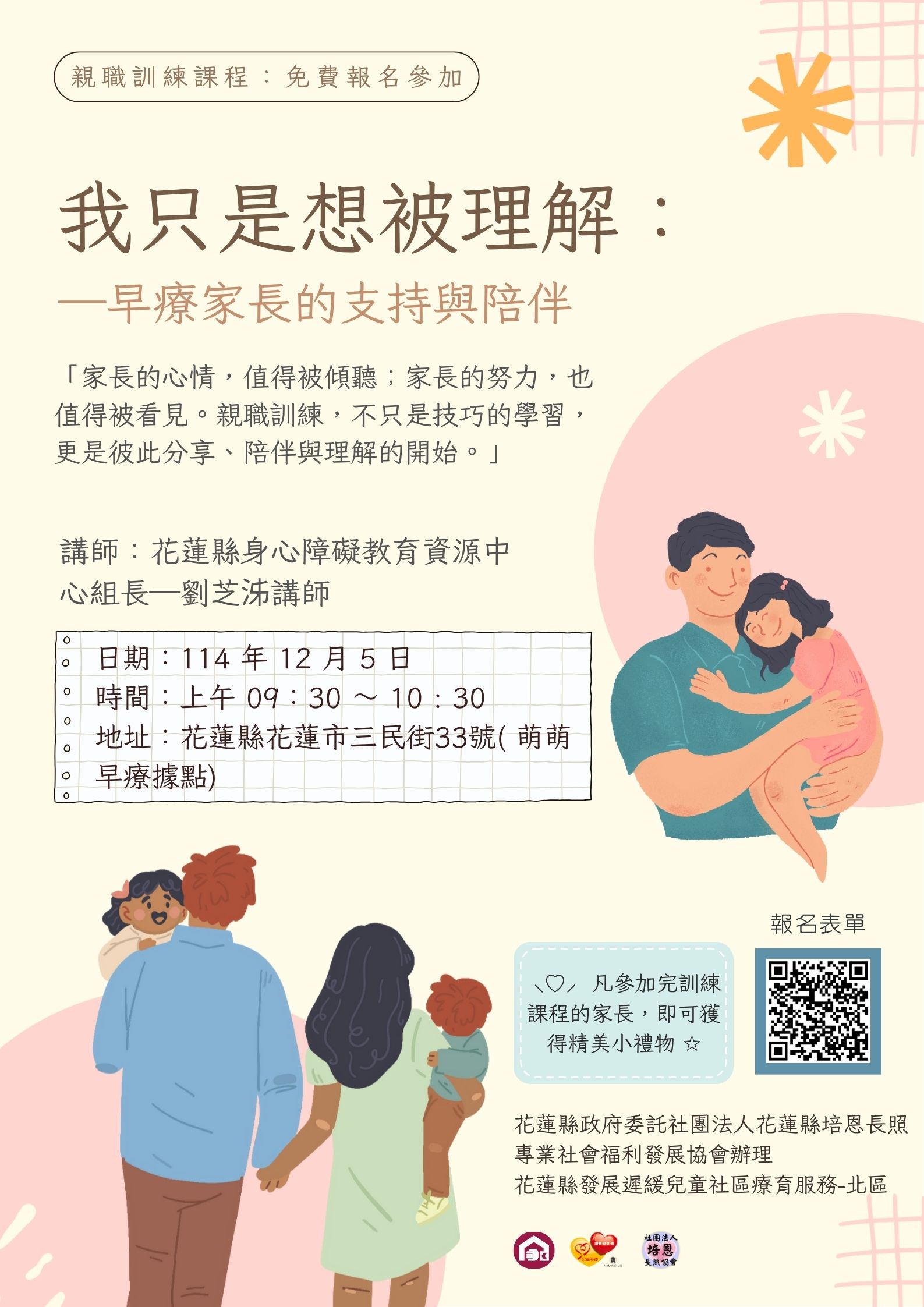 📢【12/5親職訓練-我只是想被理解:早療家長的支持與陪伴 】✨