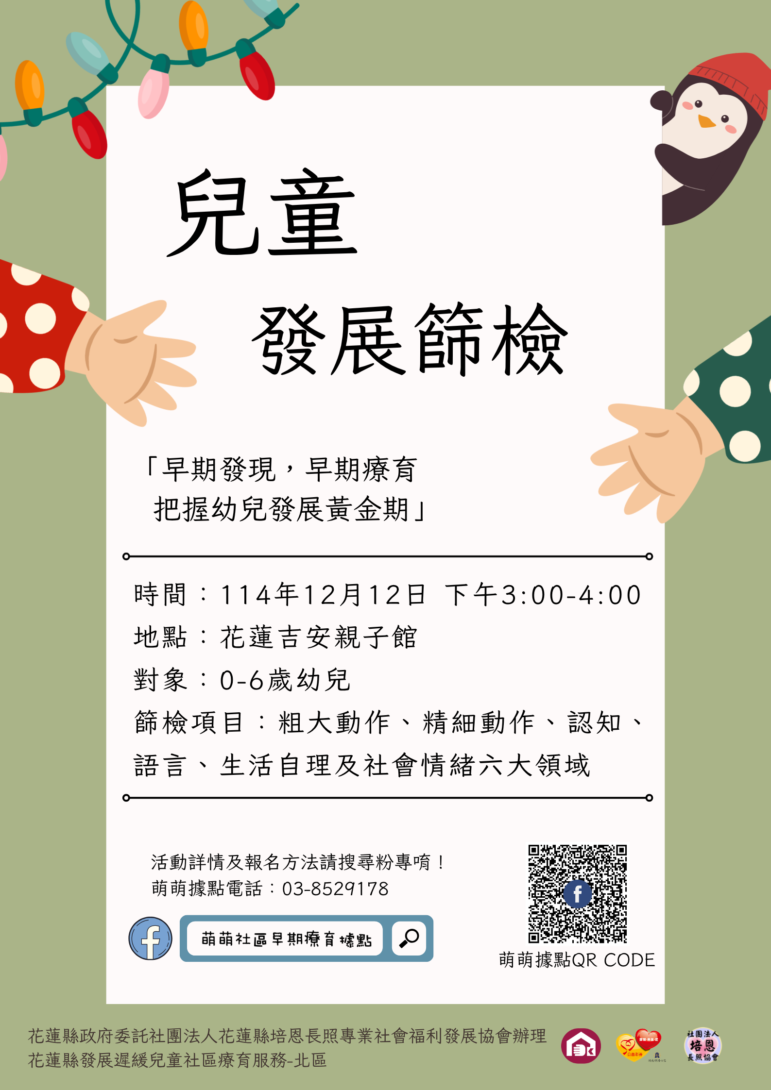【兒童發展篩檢 📢】1141212-吉安親子館✨